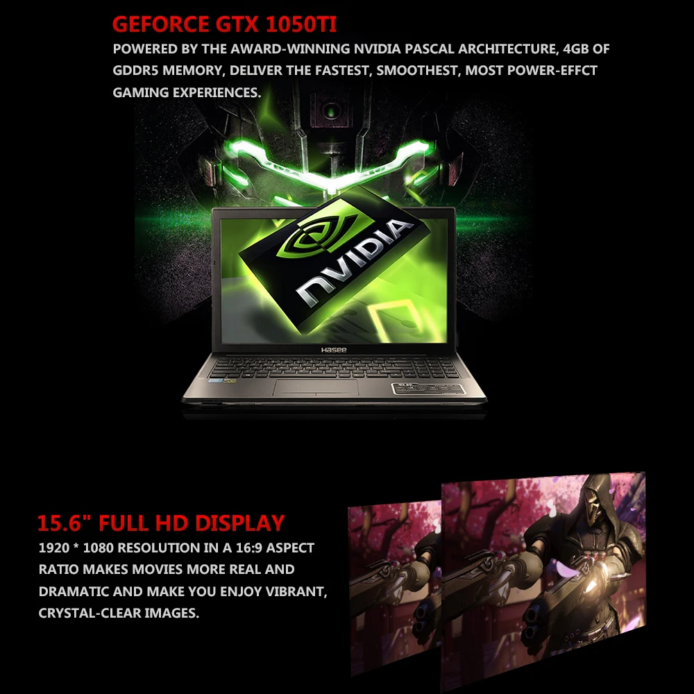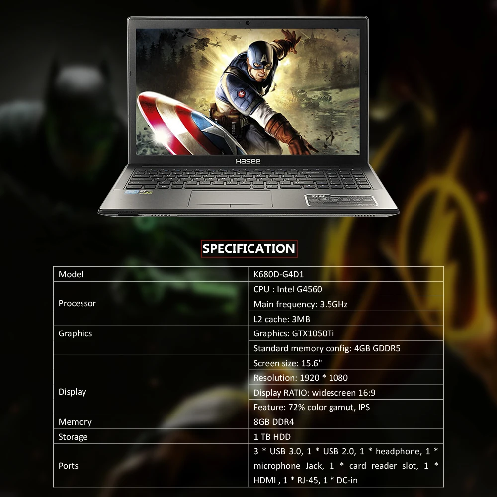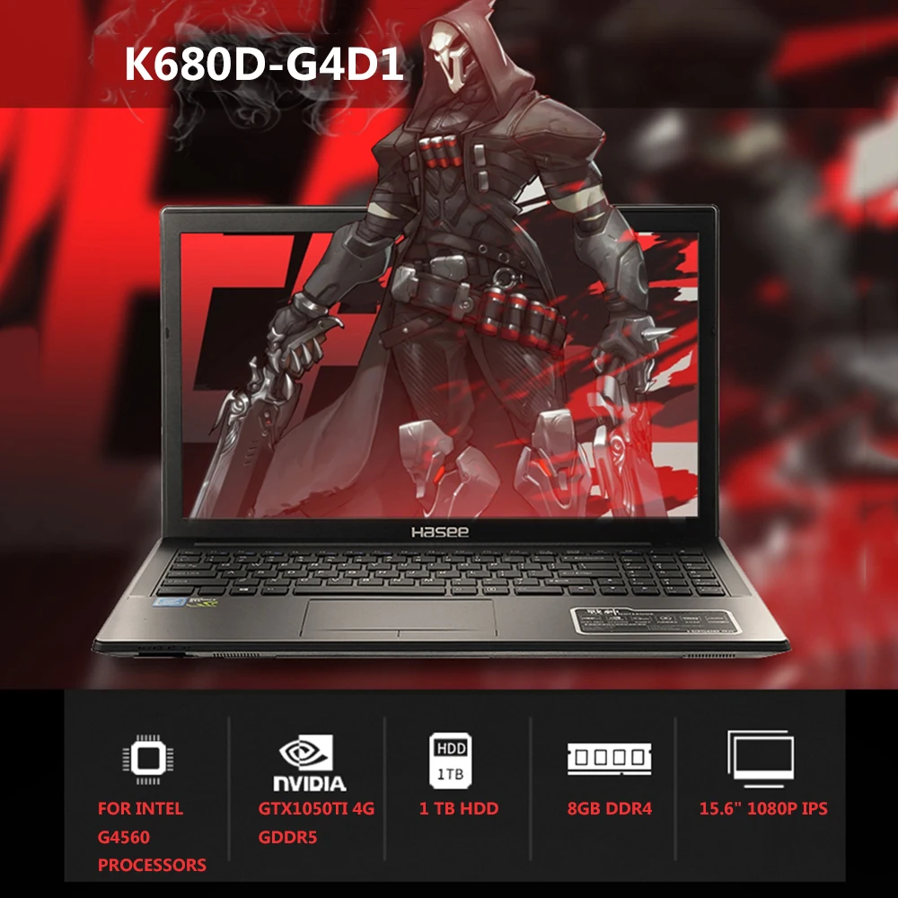 HASEE GOD OF WAR K680D-G4D1 Laptop Notebook PC 15.6" IPS 1920*1080 HD for Intel G4560 GTX1050Ti 4G GDDR5 8GB DDR4 RAM 1TB HDD